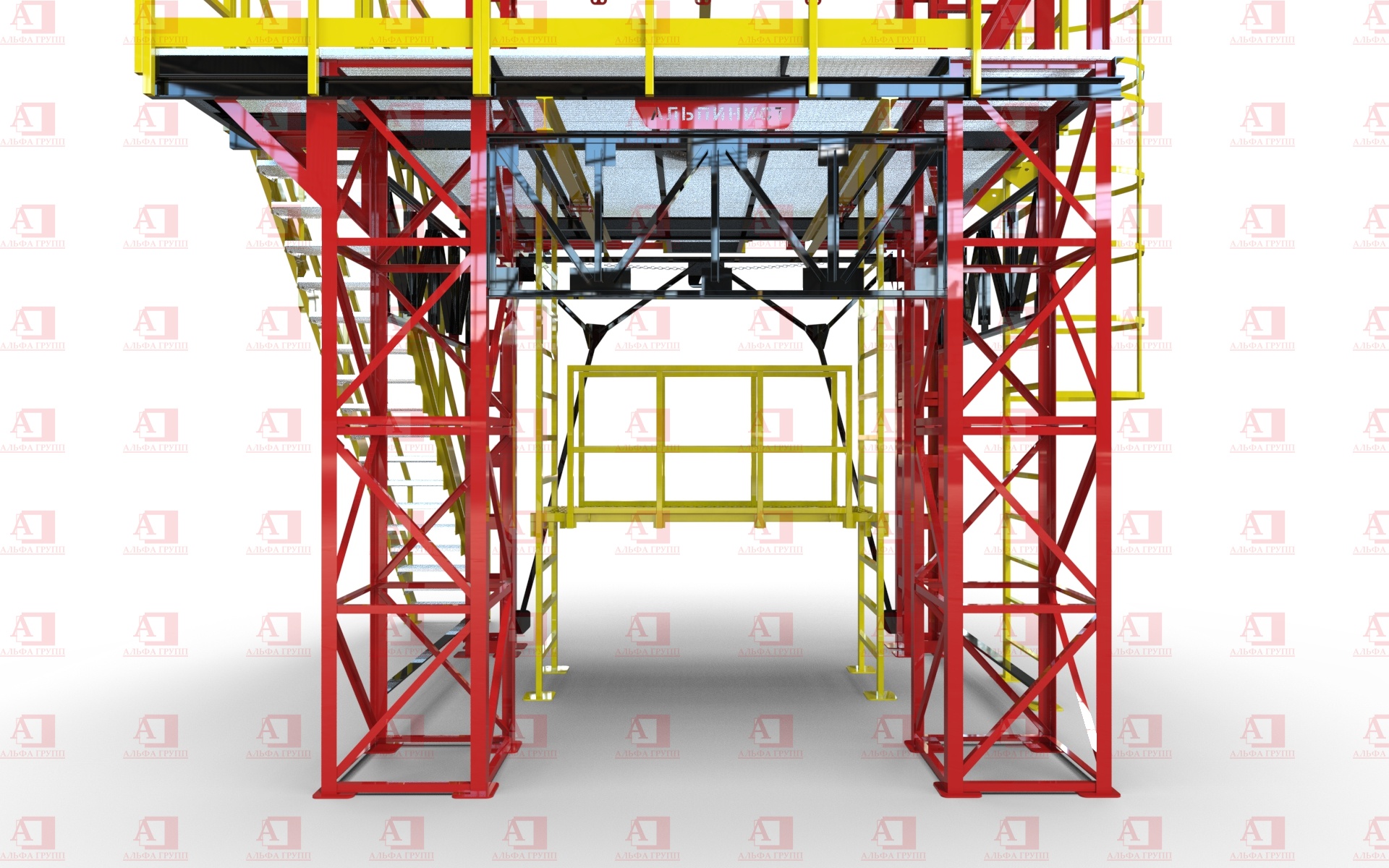 Конструктив уровней надежно крепится болтовыми соединениями к узлам и опорам полигона.