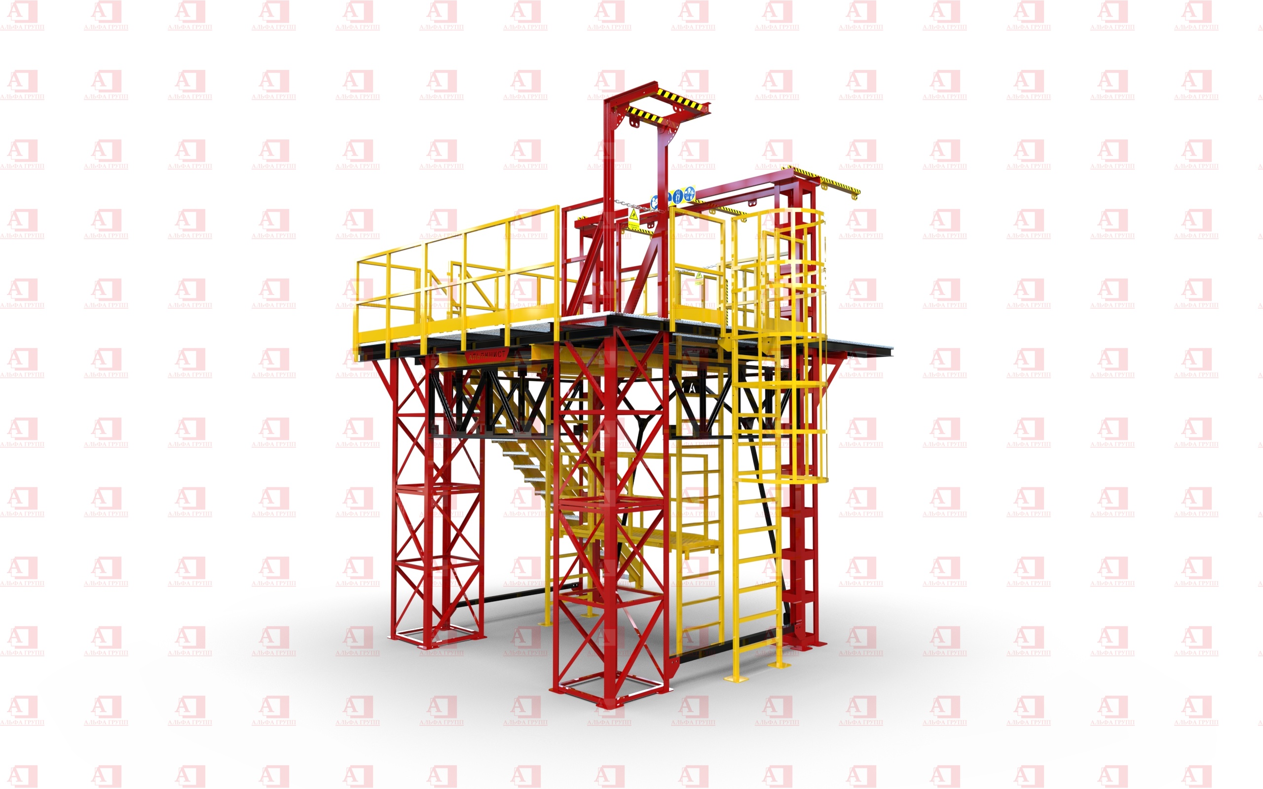 Места интенсивной работы с трипод усилены листами стали и швеллером. Люки и лазы размещены строго симметрично друг под другом для максимального использования высоты комплекса.
