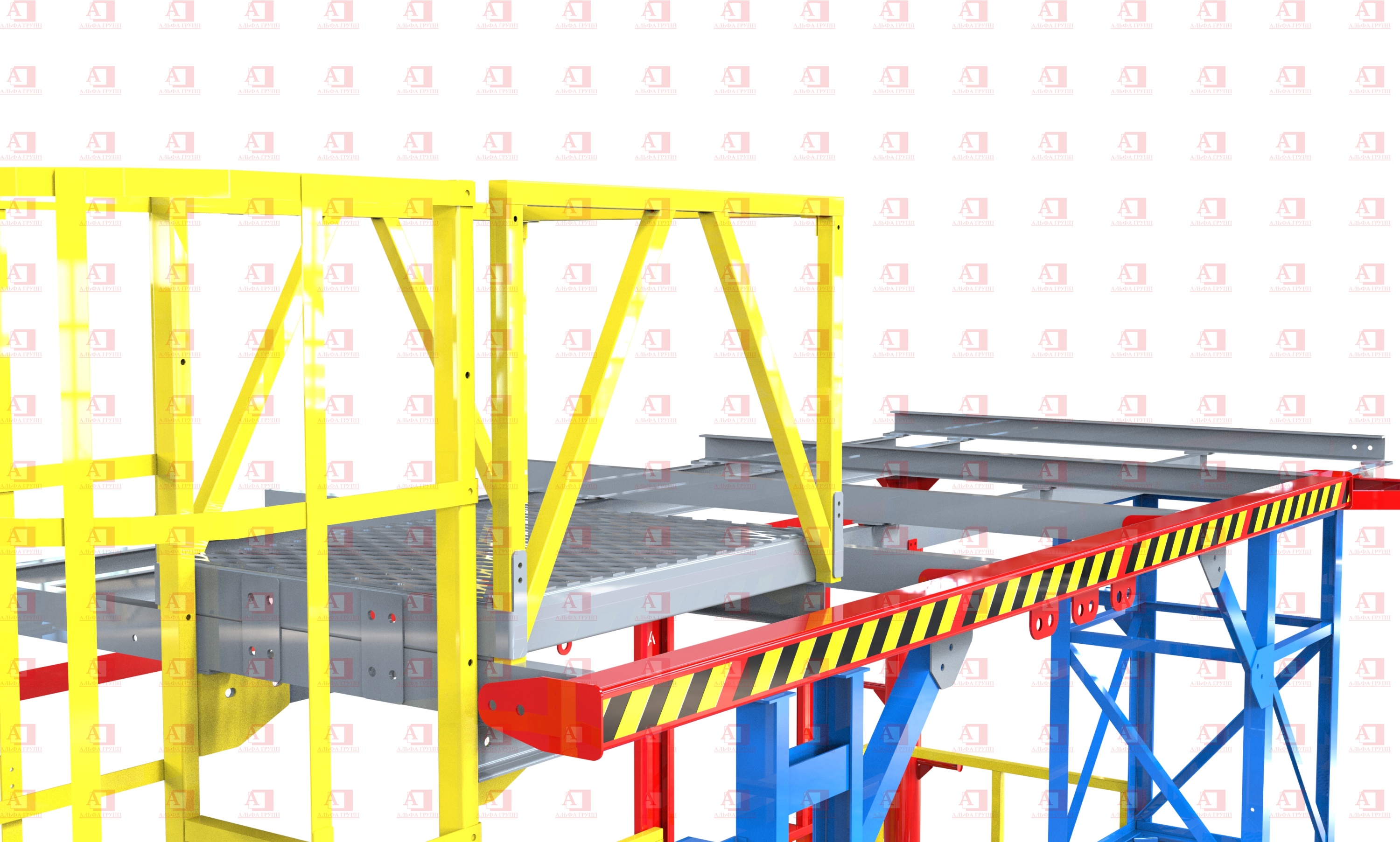 Конструктив уровней надежно крепится болтовыми соединениями к узлам и опорам полигона.